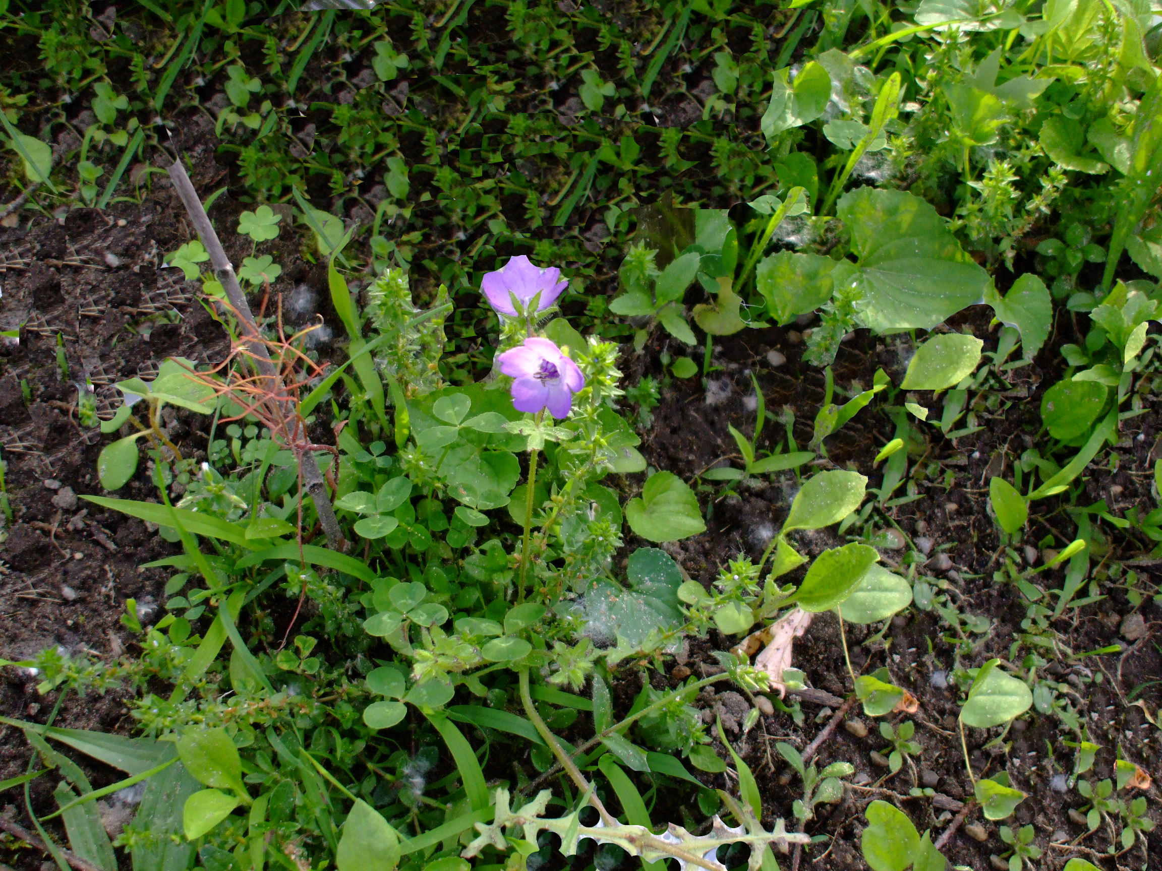 Pholistoma auritum, or Blue Fiestaflower, is native to the Southwest - California, Arizona and Nevada. It is a scraggly annual that grows in many dry locations, include mountain talus, desert scrub, open woodlands, chaparral and foothills. It blooms from early to late spring, with blue-purple flowers.