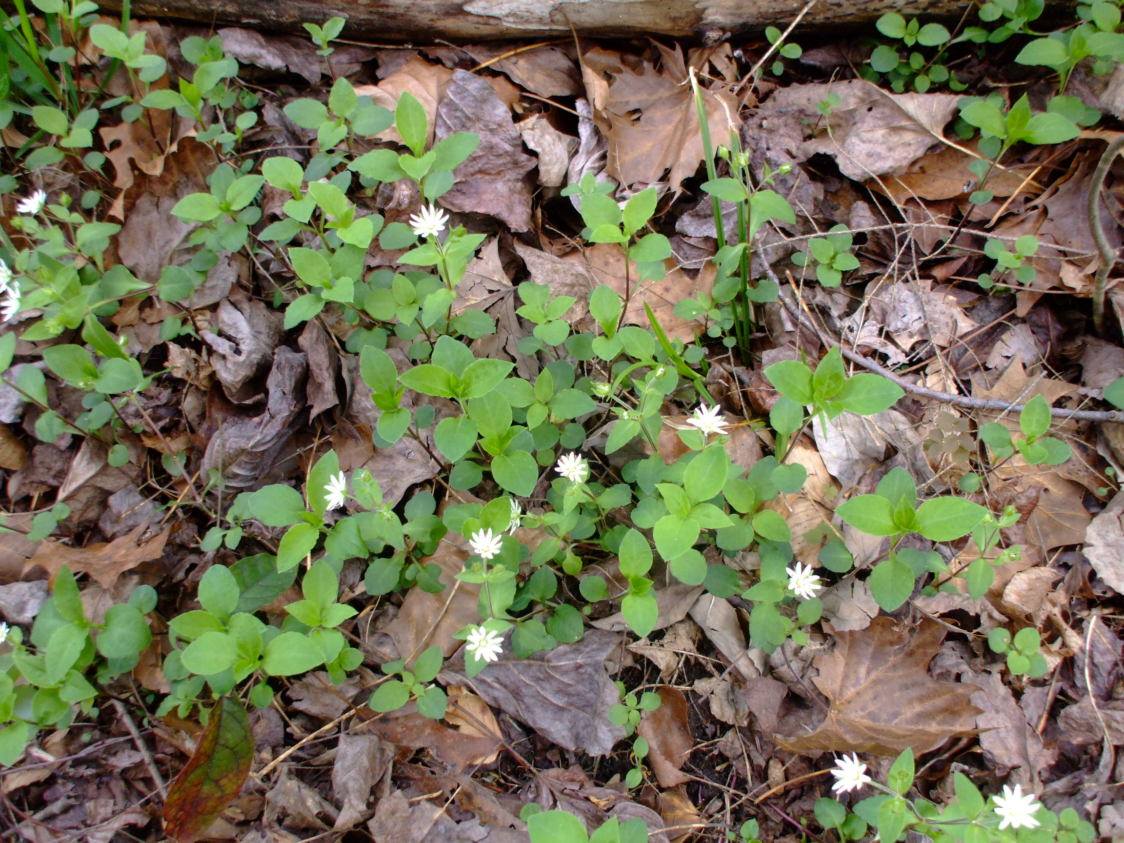 Stellaria pubera, or Star Chickweed, is native to about the eastern third of the US, but is centralized on the inner portion of that, namely the Appalachian area. It is a perennial that grows in dry to moist, partially shaded woods and along woodland edges. It blooms in early to late spring with showy white flowers.