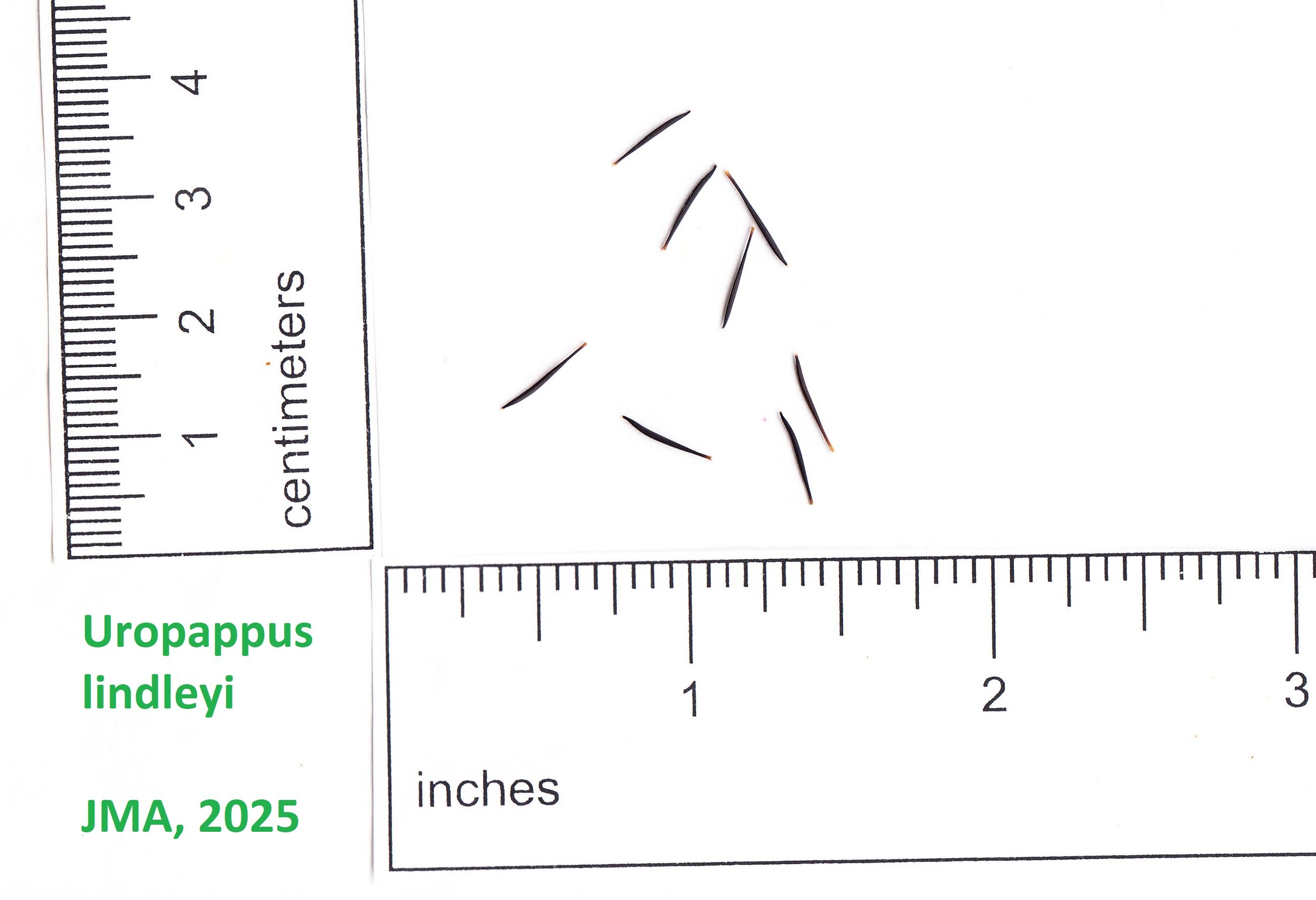 Uropappus lindleyi, or Silverpuffs, is native to much of the Western US. It is an annual that grows in many habitats, including grasslands, meadows, prairies, foothills and open woods. It blooms from early to late spring, with small yellow dandelion-like flowers.